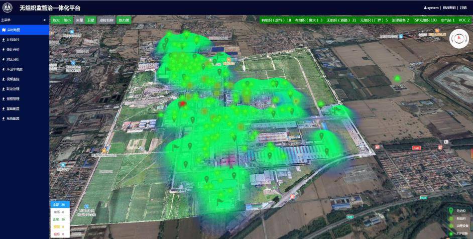 而無組織排放管控治一體化平臺建設是一套集中管控平臺,可對企業廠區內有組織、無組織等排放源中所有監測、治理設備及其相應數據進行匯集并分析展示,并通過關聯分析、溯源分析、預警分析、智能管控等實現對污染源排放的精細化管控。綜合運用智能分析技術進行海量數據的匯總、統計、分析,并將分析結果以多W度的方式進行綜合展現,對無組織和有組織污染物的排放實行監測、清潔運輸設備進行管理、對舞泡燈聯動治理進行控制的一體化操作,為降低污染物濃度提供遠程治理,為環境管理決策者提供數據支持。