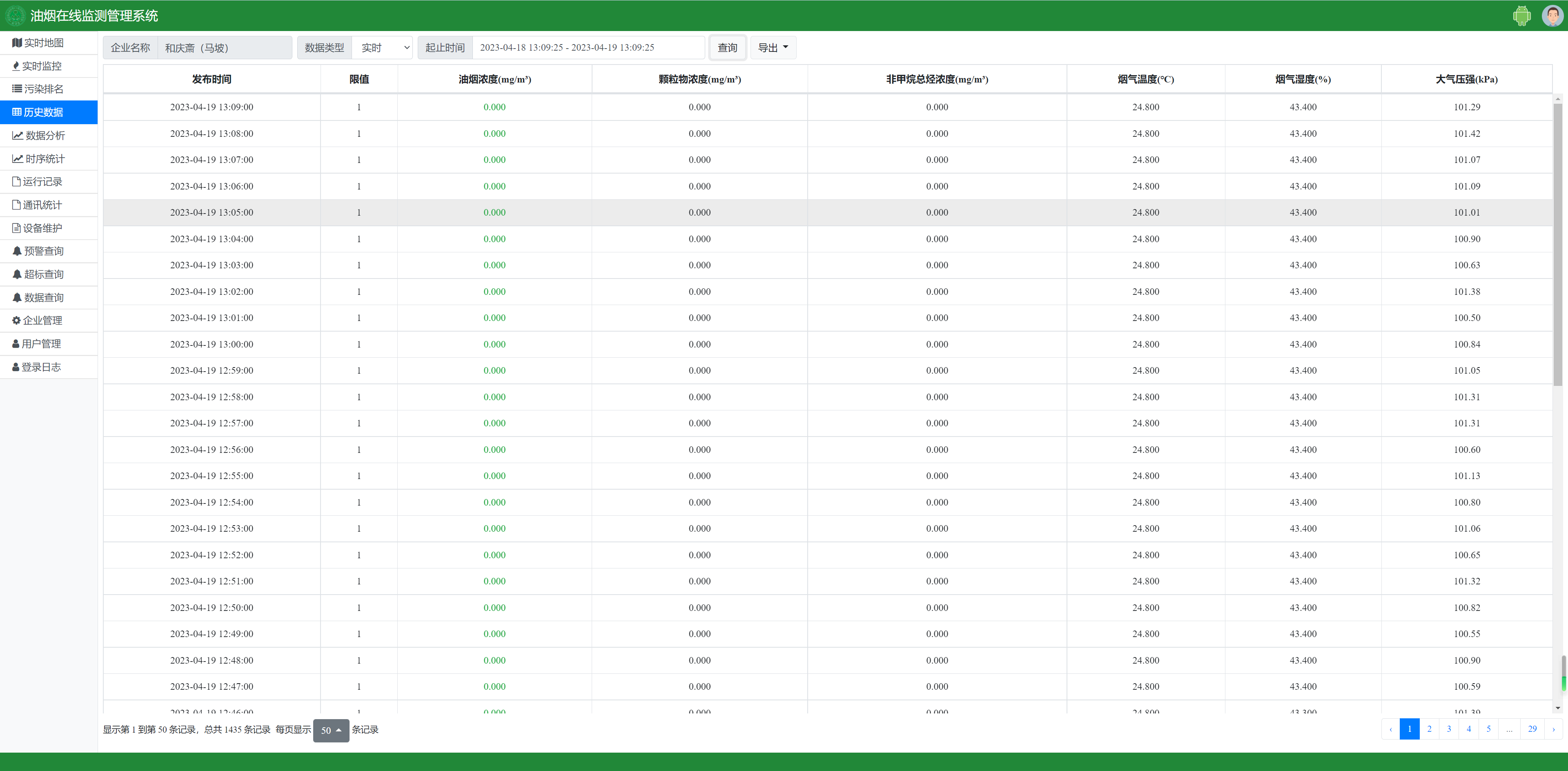 油煙在線監測設備油煙在線監控平臺主要功能:
