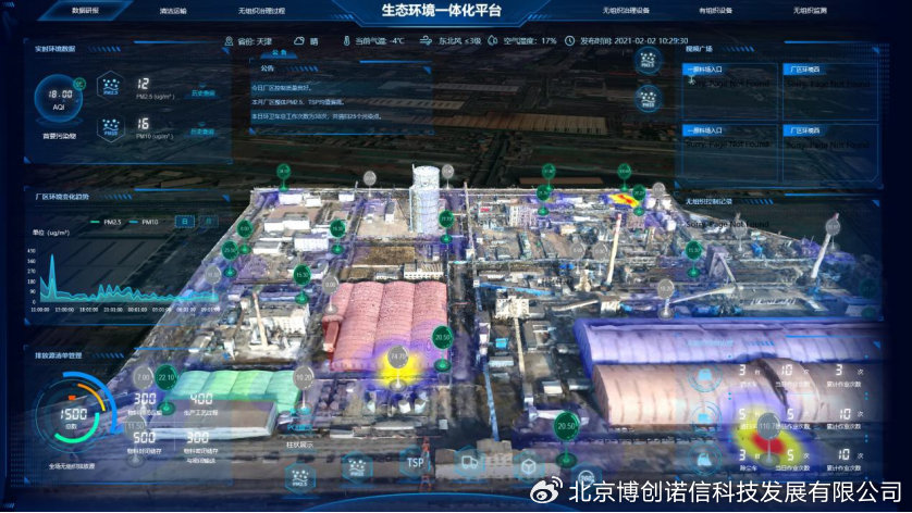 污染源管控治一體化監控平臺有效利用在線監測、物聯網、視覺 AI、大數據相關技術,實現污染物源頭減排、過程控制、全流程實時 系統管理,提高企業整體治理效率、達到環保超低排放標準。通過對廠區有組織排放、無組織排放的實時監測,結合廠區顆粒物微站、視 頻監控、車輛監管、門禁系統、能源消耗、三維 GIS 地圖等各類數據, 有效掌握并科學分析有組織和無組織排放分布濃度、變化規律等,依 據分析結果進行智能化、信息化、科學化的管控,為企業治理工作提 供有力支撐。